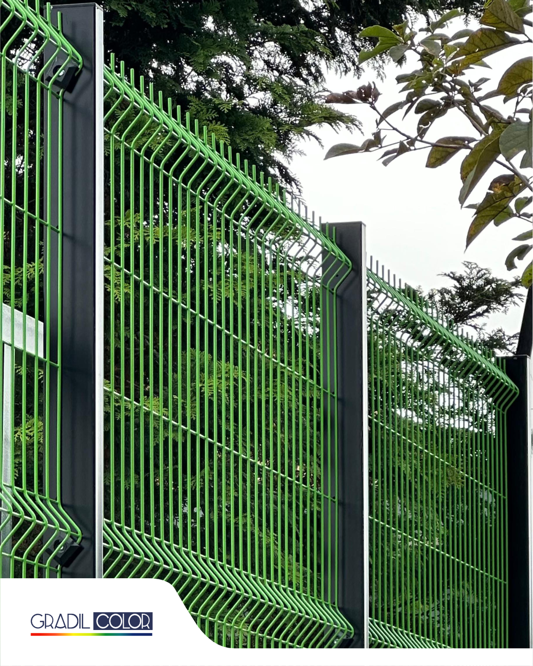 Guarda-Corpo Sideline é um sistema metálico integrado ao gradil, utilizando painéis eletrossoldados com dobras estruturais em “V”, fixados em postes metálicos reforçados com base flangeada. Possui travessa superior tubular, que aumenta a rigidez do conjunto e funciona como elemento de proteção contínua.